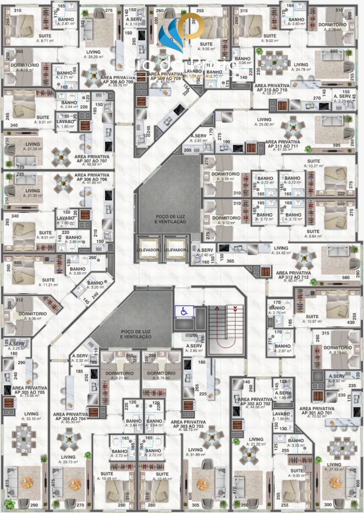 Apartamentos de 01 e 02 dormitórios com piso em porcelanato, rebaixo em gesso, espera para split com pontos na sala de estar e nos dormitórios, espera para água quente, sala de estar e jantar integrada com a sacada fechada, tudo isso em uma localização única, ao lado da Av. da Igreja, junto a SAT!